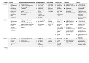 - Summary table of vitamins and minerals - Functions, recommendations, current intakes, food sources, deficiency and toxicity - Excellent study tool