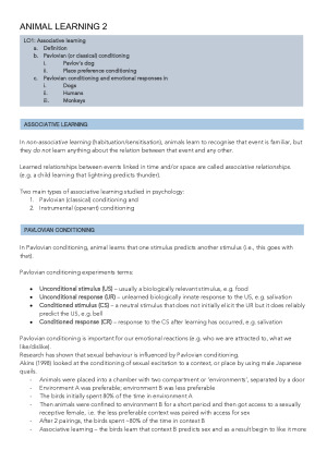 These are the notes I used to study for the final exam, on which I scored 94%. They cover every bit of content of all the lectures from weeks 1-10, including: - Memory and Cognition 1,2,3,4,5 - Animal learning 1a, 1b, 2a, 2b, 3a, 3b, 4a, 4b, 4c, 5a, 5b - Psychobiology 1,2,3,4,5,6 - Perception 1,2,3,4,5 - Abnormal psychology 1,2,3,4,5
