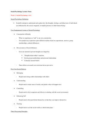 - Week 1: What is Social Psychology? Essential reading: Kassin, Fein & Markus (2015), Chapter 1 - Week 2: Doing Social Psychology Research Essential reading: Kassin, Fein & Markus (2015), Chapter 1 - Week 3: The Self Essential reading: Kassin, Fein & Markus (2015), Chapter 2 - Week 4: Perceiving Persons Essential reading: Kassin, Fein & Markus (2015), Chapter 3 - Week 5: Stereotypes, Prejudice, and Discrimination Essential reading: Kassin, Fein & Markus (2015), Chapter 4 - Week 6: Stereotypes and Attitudes Essential reading: Kassin, Fein & Markus (2015), Chapter 5 - Week 7: Attitudes Essential reading: Kassin, Fein & Markus (2015), Chapter 5 - Week 8: Conformity Essential reading: Kassin, Fein & Markus (2015), Chapter 6 - Week 9: Group Processes Essential reading: Kassin, Fein & Markus (2015), Chapter 7 - Week 10: Attraction and Close Relationships Essential reading: Kassin, Fein & Markus (2015), Chapter 8 - Week 11: Helping Others Essential reading: Kassin, Fein & Markus (2015), Chapter 9 - Week 12: Aggression Essential reading: Kassin, Fein & Markus (2015), Chapter 10