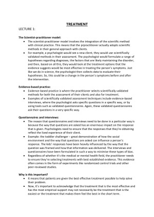 PSYC1024 full course notes (All 10 weeks) Topics covered include: Psychology as a science, The science of emotion, The science of fear and anxiety, Introduction to anxiety disorders, Anxiety disorders, Mood and depression, Treatment and All Stressed Out.