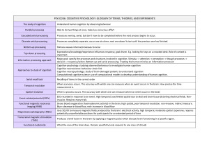 PSYU2246: COGNITIVE PSYCHOLOGY I GLOSSARY OF TERMS, THEORIES, AND EXPERIMENTS