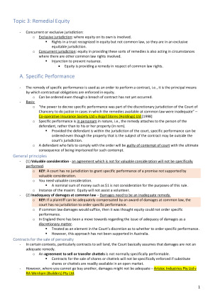 These notes cover all of the required readings and cases in the Equity UoS LAWS 2015/5015 for the final equity exam. I topped the course with a mark of 91. Topics include: - Remedial Equity - The Nature and Constitution of Trusts - Operation of Express Trusts - Fiduciary Obligations - Resulting Trusts - Constructive Trusts - Tracing - Charity