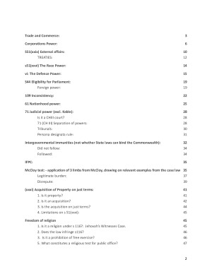 I made these notes in Autumn 2021 and got 84% in the exam. They contain everything you need for the ACL exam condensed into one well-formatted document like an answer scaffold. This ensures that you can have everything in one well-accessible place. Table of contents are also hyperlinked to enable ease of access, as well as fill-in sentences. All you have to do is follow the steps written in these notes to do well! I have done a brief summary of key facts for every important case mentioned in class. Neat and high quality formatting. List of topics covered: Topics covered: Trade and Commerce Power Executive Power Nationhood Power Acquisition of Property External Affairs Power Commonwealth Law and the State Governments Inconsistencies between laws Judicial Power Limitations Implied Freedom of Political Communication Freedom of Religion