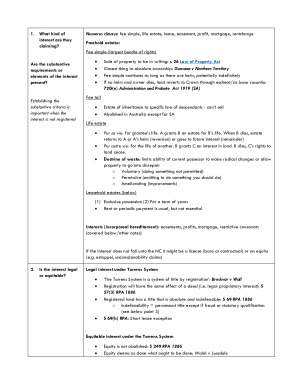 Skeletons for Property Law (HD grade) - How to answer problem questions Topics - Interests and priority - Adverse possession - Leases and licenses - Easements - Mortgages