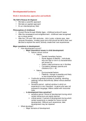Developmental Psychology Lecture Summaries