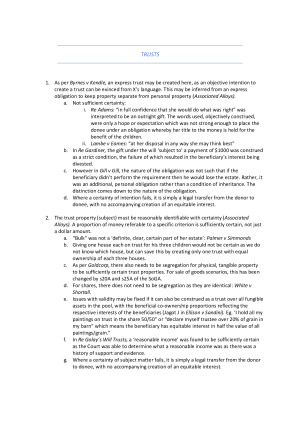 Step by Step scaffolds and easy to understand - covers all the things you need to place into the exam and talk about in order to score high marks. Topics include: - Confidence - Estoppel - Fiduciary obligations (no conflict, no profit, scope of fiduciary duties, remedies and defences to breach) - Remedial equity (specific performance, injunctions, freezing orders, search orders) - The nature and constitution of trusts (three certainties and beneficiary principle) - Duties and powers of trustees, rights of beneficiaries - Charities (charitable purposes, public benefits, schemes and cy-pres) - Express trusts - Resulting trusts (including Quistclose trusts) - Constructive trusts - Tracing and backwards tracing Sample answers at the end.