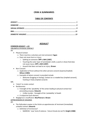 Summarised notes that I used in end of semester exam. Approved by seminar leader Includes ALL relevant law and case authority used in seminar slides and textbook