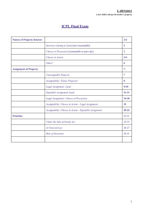 ICPL Consolidated Final Notes - Scaffolds for Final Exam - Covers all Assessable Material - types of property interests, assignability, priorities - Includes condensed notes on non-examinable content of land - Condensed notes - only a handful of case summaries, primarily scaffolds