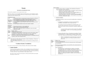 Comprehensive exam notes that can be used for tutorial questions. Has guidance on answers + structures based on attendance at lectures, tutorials and LSS tutorials. Case summaries included in each topic. Topics (in order): 1. Introduction to trusts 2. Creation of trusts (3 certainties) 3. Charitable trusts 4. Quistclose trusts 5. Statutory writing formalities 6. Constitution 7. Trustee duties 8. Defences against breach of trustee duties 9. Rights of trustees 10. Rights of beneficiaries 11. Variation of beneficiaries' rights 12. Remedies
