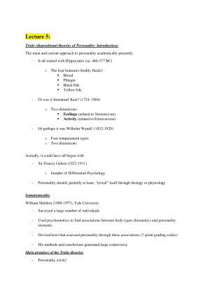 Includes: - Psychometrics - Behavioural - Psychodynamic Theories of Personality Notes were written based on verbal lectures + tutorial content.