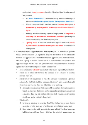 This is a detailed class notes with great explanation of the difficult parts of the course. It includes thorough case summaries which will save you a lot of time. Important points are marked in color. It is organised in a way especially helpful to answer the problem questions It includes: Topic 1: Introduction Topic 2: Interpretation and Characterisation Topic Characterisation Topic 4: Trade and Commerce power Topic 5: Freedom of interstate trade commerce and intercourse Topic 6: inconsistency Topic 7: Defence power and nationhood power Topic 8: Race power Topic 9: External affairs power Topic 10: Corporations power Topic 11: Grants power Topic 12: Taxation Topic 13: Excise power Topic 14: Cigamatic doctrine Topic 15: Melbourne Corporation doctrine Topic 16: Compulsory Acquisition of Property Topic 17: Implied freedom of political communication Topic 18: Freedom of religion