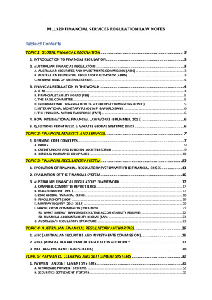 MLL329 Financial Services Regulation Law Exam Notes (Fully Contented)