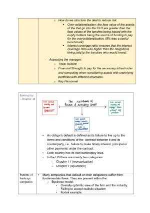 Extensive notes that cover: - Weeks Week 1 - 11 - Lending Principles, - Corporate and Small business lending, - Special Customers, Ethics in Bank Lending, - Credit Assessment, - Alternative Estimation of Credit Quality & Securitization, - Portfolio Management, - Regulation & Accounting Implications of Credit Risk, - Mitigation and Transfer - INCLUDES LIST OF CONDITIONS (these are not included in lecture notes, and essential for exam) - INCLUDES DIFFERENT TYPES OF LOANS AND DEFINITIONS (Essential for quiz) - Includes accounting measures to assess credit risk - INCLUDES HAND DRAWN DIAGRAMS AND EXPLANATIONS