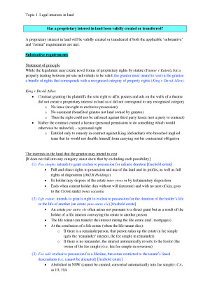 These are extremely thorough, high-quality and easy-to-follow scaffolds. Using only these scaffolds, I received HDs in both the mid-semester and final exams, with an overall mark of 87. The topics included are as follows: - Topic 1: (A) The Concept and Function of "Property" and (B) Introduction to Real Property - Topic 2: Personal Property - Introduction to Choses in Possession - Topic 3: Personal Property - Introduction to Choses in Action - Topic 4: Assignment and Disposition of Interests - Topic 5A: Priority Regimes - Topic 5B: Commercial Dealings as Security Interests Over Property