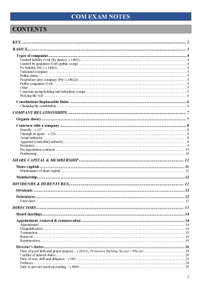 FULL LAW3CMP / LAW4002 (Company Law) NOTES FOR THE EXAM OR ASSIGNMENT - Includes ALL information from lectures, seminars and readings from Wk 1-12 inclusive, a massive 34 pages of content perfect for the exam - typed, presented in clear, easy to see and easy to understand format with uniform headings, citations, case summaries, page numbers and graphs - contents page at the start - includes citations to ALL SOURCES, including legislation, cases and more in blue, easily identifiable - all made by an A-grade student Take a look at the summary to see what subjects I go through and a quick preview of the first page.