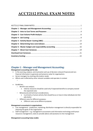 ACCT2112 MANAGEMENT ACCOUNTING EXAM NOTES - 95% STUDENT