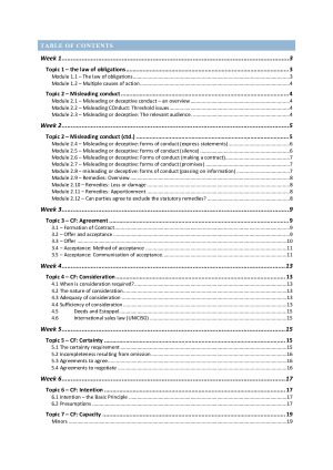 Topics include: - Misleading and deceptive conduct - Contract formation - Estoppel - Restitution Includes exam step guide to provide a method to answer exam questions.