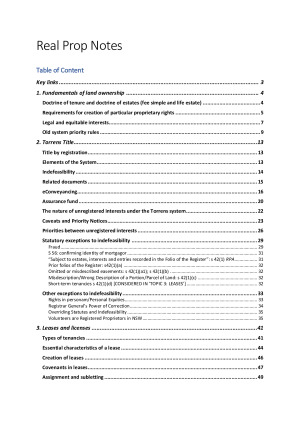 Extensive notes for the USYD unit Real Property Law. Contains topic overviews, principles and briefs of key cases. You can check out my other listings for summary notes for this unit.