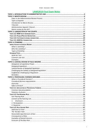 DISTINCTION exam notes. Detailed and thorough covering all topics fully. Includes in depth analysis of the grounds of review, the fundamentals of decision making, relevant structuring for exam problem questions, etc