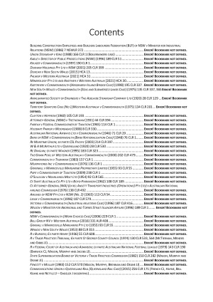 These are complete case summaries that were referred to during the course. There are over 100 cases and I've included an example of some of them here. Example of Cases included: BUILDING CONSTRUCTION EMPLOYEES AND BUILDERS LABOURERS FEDERATION (BLF) OF NSW V MINISTER FOR INDUSTRIAL RELATIONS (NSW) (1986) 7 NSWLR 372 UNION STEAMSHIP V KING (1988) 166 CLR 1 (BOILERMAKERS CASE) KABLE V DIRECTOR OF PUBLIC PROSECUTIONS (NSW) (1996) 189 CLR 51 KRUGER V COMMONWEALTH (1997) 190 CLR 1 DURHAM HOLDINGS PTY LTD V NSW (2001) 205 CLR 399 DUNCAN V NEW SOUTH WALES [2015] HCA 13 PALMER V WESTERN AUSTRALIA [2021] HCA 31 MINEROLOGY PTY LTD AND ANOTHER V WESTERN AUSTRALIA [2021] HCA 30 KARTINYERI V COMMONWEALTH (HINDMARSH ISLAND BRIDGE CASE) (1998) 195 CLR 337 NEW SOUTH WALES V COMMONWEALTH (SEAS AND SUBMERGED LANDS CASE) (1975) 135 CLR 337, 365 AMALGAMATED SOCIETY OF ENGINEERS V THE ADELAIDE STEAMSHIP COMPANY LTD (1920) 28 CLR 129 TERRITORY SENATORS CASE (NO 1)WESTERN AUSTRALIA V COMMONWEALTH (1975) 134 CLR 201 CLAYTON V HEFFRON (1960) 105 CLR 193 ATTORNEY-GENERAL (NSW) V TRETHOWAN (1931) 44 CLR 394 FAIRFAX V FEDERAL COMMISSIONER OF TAXATION (1965) 114 CLR 1 HUDDART PARKER V MOOREHEAD (1908) 8 CLR 330 AUSTRALIAN NATIONAL AIRWAYS LTD V COMMONWEALTH (1946) 71 CLR 29 BANK OF NSW V COMMONWEALTH (BANK NATIONALISATION CASE) (1948) 76 CLR 1 RE MARITIME UNION; EX PARTE CSL PACIFIC (2003) 214 CLR 397 W & A MCARTHUR LTD V QUEENSLAND (1920) 28 CLR 530 RE DINGJAN; EX PARTE WAGNER (1995) 183 CLR 323 THE GRAIN POOL OF WESTERN AUSTRALIA V COMMONWEALTH (2000) 202 CLR 479 COMMONWEALTH V TASMANIA (1983) 157 CLR 1 MURPHYORES INC V COMMONWEALTH (1976) 136 CLR 1 GRANNALL V MARRICKVILLE MARGARINE PROPRIETARY LIMITED (1955) 93 CLR 55 PAPE V COMMISSIONER OF TAXATION (2009) 238 CLR 1 O’SULLIVAN V NOARLUNGA MEAT LTD (1954) 92 CLR 565 CF SWIFT AUSTRALIA CO PTY LTD V BOYD-PARKINSON (1962) 108 CLR 189 CF ATTORNEY-GENERAL (WA) (EX REL ANSETT TRANSPORT INDUSTRIES (OPERATIONS) PTY LTD) V AUSTRALIAN NATIONAL AIRLINES COMMISSION (1976) 138 CLR 492 AIRLINES OF NSW PTY LTD V NSW (NO. 2) (1965) 113 CLR 54 LEASK V COMMONWEALTH (1996) 187 CLR 579 VICTORIA V COMMONWEALTH (INDUSTRIAL RELATIONS CASE) (1996) 187 CLR 416 WILSON V MINISTER FOR ABORIGINAL AND TORRES STRAIT ISLANDER AFFAIRS (1996) 189 CLR 1 NSW V COMMONWEALTH (WORK CHOICES CASE) (2006) 229 CLR 1
