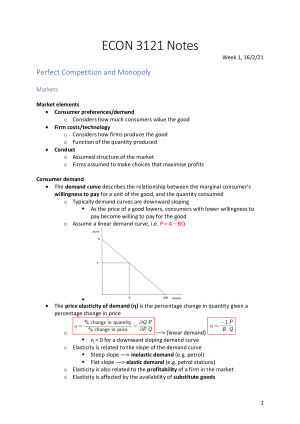 Notes cover all topics of the course in week-by-week layout with detailed explanations, diagrams and formulae, taken from the lectures, textbook and tutorial problems. Topics covered: - Perfect competition - Monopoly - Cournot oligopoly - Bertrand oligopoly - Dynamic strategic interactions - Stackelberg oligopoly - Price discrimination - Product differentiation - Empirical studies - Advertising and entry