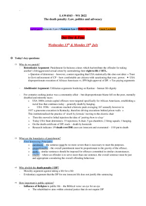 LAW4543 The death penalty: Law, politics and advocacy - These are HD Notes for the Winter/S2 Intensive Unit on the Death Penalty. Day One & Four: Principles and History - Japan and Phillipines Day Two & Five: Role of Domestic and Int'l Courts - India Day Three & Six: Role of Public Support - MYS and PNG