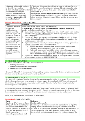 This document contains very comprehensive notes for every topic of the Equity unit and includes some prewritten scaffolds for answering exam questions. 1. The History and Nature of Equity 2. Applications of the Conscience of Equity 3. Remedial Equity 4. The Nature and Constitution of Trusts 5. Operation of Express Trusts 6. Fiduciary Obligations 7. Resulting Trusts 8. Constructive Trusts 9. Tracing 10. Charity