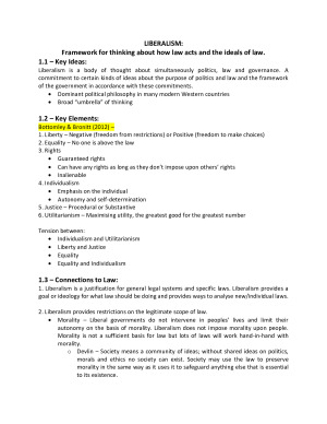 Detailed lecture notes covering all content including: Liberalism Violence Relationships Lawyers Courtrooms Judges Lobbying Law Reform Commissions Technology Globalisation Disobeying Law Accessing Justice