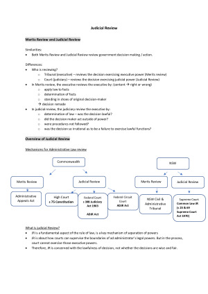 - Jurisdiction - Justiciability - Standing - Jurisdictional Error - Remedies - Grounds of review - Breach of Statutory procedure - Errors in delegation of Power - Overview of Procedural fairness - The Hearing Rule - The Rule Against Bias - No Evidence - Jurisdictional Facts - Considerations - Improper Purpose - Fettering of Discretion - Unreasonableness, Irrationality, Proportionality - Privative Clauses - Delegated Legislation