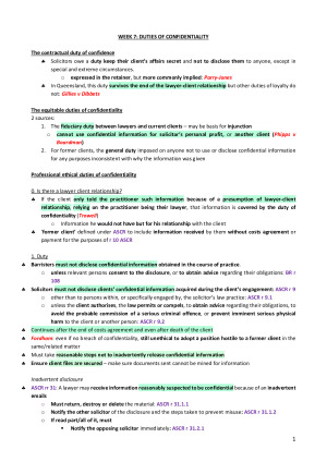 These are comprehensive, color coded notes for all examinable content. All cases (including detailed summaries) and statutes learnt are included. It is a helpful summary of all lectures, seminars and readings set for the course, definitely memorizable for exams. Important takeaway from the cases & ratio decidendi all highlighted. There is a step-by-step structure for how to answer a problem question (see sample notes). The structure is set out very clearly and I have received feedback that the notes are extremely helpful for exam preparation! I received 91% overall for the course using these notes. Topics covered: 1. Who and what are lawyers and lawyering? 2. Lawyers' duties and theories 3. Admission to law and professional discipline 4. Understanding the lawyer-client relationship 5. Competent lawyering 6. Duties of Confidentiality 7. Billing ethically 8. Advocates' ethical roles and duties 9. Conflicting duties/loyalties- part 1 10. Conflicting duties/loyalties - part 2 11. Lawyers' duties to third parties and to all