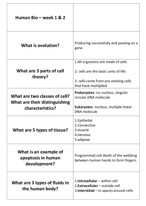 MEDS1001 Human Biology Flash Cards Lectures week 1-7 Covered