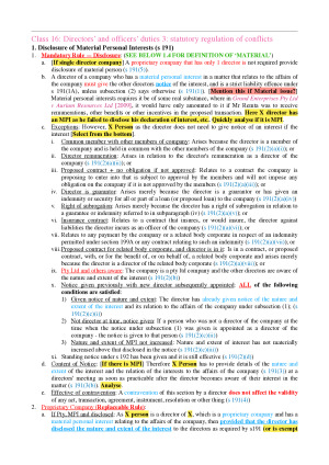 BENEFITS OF MY NOTES - These notes provide you with order and structure in how you approach problem questions. - You can just copy-paste the notes into your responses (or do some minor re-tweaking) and then apply your facts in sections that are highlighted. It really makes it that simple. - I have provided PINPOINTS as well having completed the readings and this will give you bonus marks in achieving that HD. - These were for the LAWS2014 unit but it is highly transferrable for to the LAWS6810 unit LEGEND - Light Blue = Key principles - Pink = Case Names - Dark Blue = Legislation - Red / Bold = Anything Key to Note - Also sections to indicate where you put in analysis Topics 1. History 2. Company Formation 3. Debt and Equity 4. Offer of Securities 5. Insolvency Law 6. Corporate Personality 7. Corporate Veil 8. Corporate Constitution 9. Decision Making Organs 10. Company Meetings 11. General Law Liability in Contract and Tort 12. Statutory Civil Liability 13. Corporate Criminal Liability 14-18. Directors Duties: Good Faith; Conflict and Secret Profits' Duty of Care; Statutory Regulation of Conflicts; BJR and Ratification 19. Member Oppression, Statutory Injunctions 20. Statutory Derivative Action, Just and Equitable Winding Up