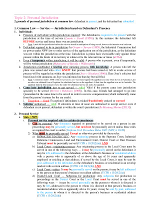 These are the ultimate PILA notes that will provide you with order and structure in how you approach problem questions. I have produced a clear scaffold structure that is EASY to read and navigate through. I have completed all the readings this semester to get the PINPOINTS you need that will give you the bonus marks in achieving that D/HD. Perfect for use whether from the beginning of semester (recommended!), or towards the end. These sets of notes well worth the investment and saves you a lot of time and trouble from reading cases and re-watching lectures. Once you get it, you will understand. ✓ Succinct information ✓ Comprehensive ✓ Colour-coded for easy reading Notes are also colour coded so that you can easily determine what is relevant. Light blue = key principle Pink = Cases Dark blue = legislation Red / bold = anything super key to point out Topics - Personal Jurisdiction - General Applicable Law Topics - Foreign Law - Law Applicable to Torts - Law Applicable to Contracts - Mandatory Rules and Forum Statutes - Recognition and Enforcement of Foreign Judgments