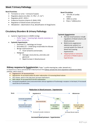 Colour-coded content, definitions, helpful notes, key differences/comparisons, summaries, and learning objectives for weeks 7-12. Week 7 - Urinary pathology Week 8 - Bone and Joint pathology Week 9 - Genital and Gestational pathology Week 10 - GIT and Liver pathology Week 11 - Endocrine, Eye and Skin pathology Week 12 - Nervous system pathology
