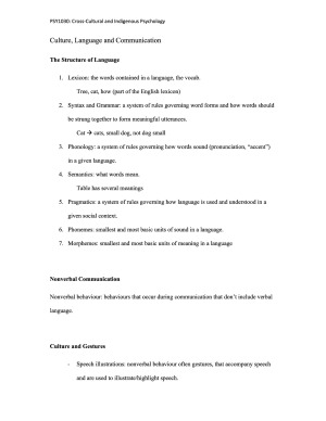 Topics Covered: - The structure of language - Nonverbal communication - Culture and Gestures - Culture and Voice - Culture, Interpersonal Space and Touch - Intracultural and Intercultural Communication - Obstacles to effective intercultural communication