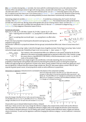 Compact but detailed cheat sheet for final exam. Colour coded to aid quick finding in the exam. Includes hand drawn diagrams to aid understanding (see sample for example). Topics: WEEK 1 – INTRO, DATA MANIPULATION AND ETHICS WEEK 2 – SAMPLE SIZE AND STATISTICAL POWER WEEK 3 – INTERACTIONS IN REGRESSION WEEK 4 – ADVANCED LOGISTICAL REGRESSION I WEEK 5 – ADVANCED LOGISTIC REGRESSION II WEEK 6 – MANOVA WEEK 7 – MULTI-LEVEL MODELLING WEEK 8 – PATH ANALYSIS USING REGRESSION WEEK 9 – PATH ANALYSIS USING SEM WEEK 10 – EXPLORATORY FACTOR ANALYSIS I WEEK 11 – EXPLORATORY FACTOR ANALYSIS II WEEK 12 – CONFIRMATORY FACTOR ANALYSIS
