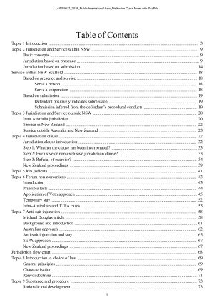 I listened to three lectures' recordings and made this comprehensive note which includes (1) a comprehensive class ntoes with detailed case summaries. (2) scaffold for each part of study which is of perfect help for your final exm. (3) mindmap sorting out the complicated procedures. This note helps me to get Distinction in the final exam. In detail, the note includes: 1. Introduction 2. Jurisdiction within NSW 3. Jurisdiction outside NSW (intra state; NZ and internationally) 4. Juriidiction clause 5. Res judicata 6. Forum non conveniens 7. Anti-suit injunction 8. Choice of law introduction 9. Substance and procedure 10. Foreign law 11. Choice of law in torts 12. Choice of law in Maritime torts 13. Choice of law in contract 14. Enforcement