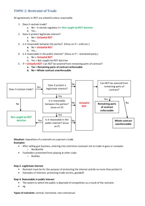 Carefully planned out answer guides / brief summaries of MLL409 topics that require a process to go through when answering exam questions. I found these extremely useful when answering exam questions under time pressure to help quickly identify the issues and check that I had covered everything required when answering each question. They also act as a great overview of the unit as a whole. In a content-heavy unit these are ideal to use in conjunction with your own full notes, or with my exam notes - "MLL409 - Competition Law & Policy", which are also available to purchase. Notes contain: - topic 2 (Restraint of Trade) - topic 6 (Cartel Conduct) - topic 7 (Anti-Competitive Agreements and Price Signalling) - topic 8 (Exclusionary Provisions (Boycotts) - topic 9 (Misuse of Market Power) - topic 10 (Exclusive Dealing) - topic 11 (Resale Price Maintenance) - topic 12 (Mergers) - topic 14 (Access)