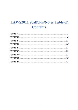Hey everyone! These are the scaffolds/notes I used when studying FedCon in semester 1 2022 at USYD. With them, I came first in the mid-semester assignment and achieved the 3rd highest mark (89) in the course overall. I refer to them as scaffolds/notes as they are extremely comprehensive scaffolds, meaning they can serve the dual purpose of being referred to in an exam, or being used to learn the course content. What are you getting? - Very comprehensive HD scaffolds resulting from distilling all relevant material from the lectures and readings - Cases/issues/provisions highlighted so notes are easily navigable in exam contexts - Any ambiguities in the law highlighted so they can be addressed in PQ's - Step-by-step mini summaries of how to approach problems Topics covered: Every topic studied in LAWS2011 for semester 1 2022 Topic A: Principles of Constitutional Law/ Trade & Commerce Power Topic B: Inconsistency Topic C: External Affairs Power Topic D: Corporations Power Topic E: Freedom of Interstate Trade Topic F: Taxation and Grants Topic G: Defence Power Topic H: Implied Freedom of Political Communication Topic I: Intergovernmental Immunities