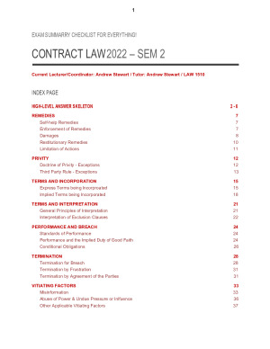 EXAM SUMMARRY & CHECKLIST FOR EVERYTHING! - Contract Law - Sem 2, 2022 - 85 HD Mark