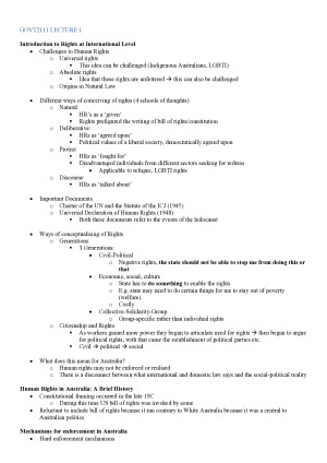 GOVT2111 Human Rights and Australian Politics Complete Reading Notes - Distinction (77)