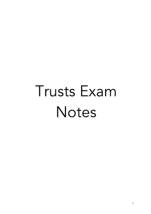 Comprehensive notes for the Trusts exam! Using these notes enabled me to achieve an 85 for the subject and 80+ on the exam. The notes cover all essential topics for the exam including: - Introduction and Classification of Trusts - Creation of Express Trusts - Trust Structures - Statutory Writing Formalities - Constituting the Trust - Duties and Powers of Trustees - Defences and Limitations on Liability - Rights of Trustees - Rights of Beneficiaries - Variation of Beneficiaries' Rights - Remedies for Breach of Trust The notes are organised in a coherent and logical manner with subheadings, bolding, colourful text and numbering. All relevant cases and legislation from reading guide are referenced (including those new for 2022 such as the Owies decision) with full case summaries and key principles/provisions outlined. Furthermore, the notes include detailed templates (including introduction and conclusion). These templates allow for the particular facts in the scenario to be slotted into the sentences ensuring that time can be effectively spent identifying materials facts and formulating cogent legal arguments