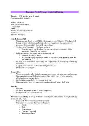 Marketing Strategy weekly case study notes: - Weekly case studies unpacked - Marketing analysis of each case - Reference to Marketing theories - Answers to discussion questions Case Studies: 1. Brannigan Foods: Strategic Marketing Planning 2. Ford Ka: The Market Research Problem 3. Brita: In Search of a Winning Strategy 4. Reversing the AMD Fusion Launch 5. The Walt Disney Studios 6. Pedigree Growth Strategy 7. Ocado 8. Choosy 9. Wattpad