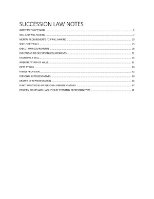 These HD notes provide helpful case summaries, tables and a structure that can help you ace the subject that is Succession Law! They are colour coded and easy to read. These notes cover all examinable topics, including: Intestate Succession Will and Will Making Mental Requirements for Will Making Statutory Wills Execution Requirements Exceptions to Execution Requirements Changing a Will Interpretation of Wills Gifts by Will Family Provision Personal Representatives Grants of Representation Functions and Duties of Personal Representatives Powers, Rights and Liabilities of Personal Representatives Please ensure you adapt your notes for any changes to the course for your semester.