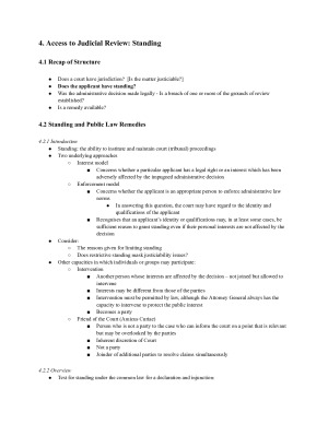 Summary of what you get: - Comprehensive course notes - Scaffolds for any problem question More information: Clear, easy to understand, yet comprehensive set of notes on Administrative Law. This document includes notes on all relevant legislation and case law, which clearly defines the facts, decision and key principles of each case listed on the unit reading guide. IN ADDITION, this document contains scaffolds which provide a clear step-by-step process for solving all types of problem questions with appropriate authorities. These scaffolds are all that I relied on during the final exam. These notes were made through a close reading of the required reading (cases, legislation and textbook), compiling a range of notes written by HD students and using a range of in-depth supplementary readings and textbooks. Topics: - Introduction - Merits review - Judicial review – jurisdiction of the courts - Access to judicial review - standing - Judicial review of rule-making - Procedural fairness: Implication - Procedural fairness: Content of the hearing rule - Procedural fairness: The rule against bias - Considerations, purposes, policies and representations - Unreasonableness - Errors of law and fact - Jurisdictional errors - Judicial review remedies - Case study - breach of statutory duty to give reasons - Restricting judicial review