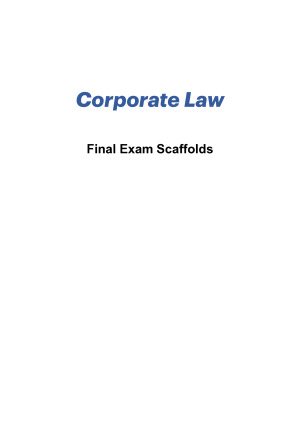 These scaffolds got me an HD mark in the final exam. Content covered: - Meetings and decision-making power - Corporate fundraising - Directors' and officers' duties - Duty of care, skill and diligence - Duty to prevent insolvent trading - Duty to act in good faith - Duty to act for a proper purpose - Shareholder remedies