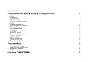 comprehensive notes, in scaffold format All topics covered: - Trespass to Person: Assault, Battery & False Imprisonment. - Trespass to Land - Intentional Tort DEFENCES - NUISANCE - Negligence General - Defences to Negligence - Pure Economic Loss: - PURE MENTAL HARM - CONTRIBUTION AMONG TORTFEASORS