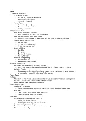 Summarised notes for "Chemical Criminalistics" including: - Types of traces (paint, glass, fibres, soil) - Analysis methods - Comparison methods - Interpretation of results