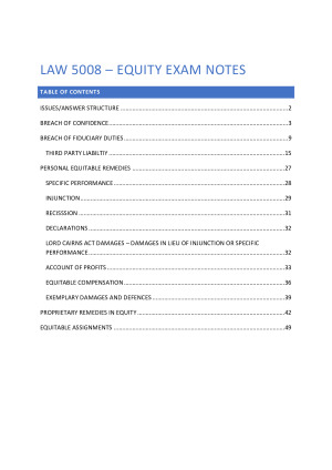 HD LAW5008 - EQUITY LAW COMPREHENSIVE EXAM NOTES INCL. CASE SUMMARIES