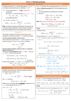 I finished the unit in 2022 semester 1, so the content should not have changed much. Contents covered in the notes include: Week 01: Preliminaries: moment generating function, joint distribution, conditional probability and conditional expectation, random sum and basic concepts of stochastic processes Week 02: Markov chain: transition probabilities, Chapman-Kolmogorov equations, and classification of states Week 03: Markov Chain: Periodicity, recurrence and transience, positive and null recurrences Week 04: Markov Chain: limit distribution, stationary distribution, absorption probability and mean return time Week 05: Random walk and Branching processes: Gambler's ruin problem, expected duration, extinction probability Week 06: Random walk and Branching processes: expected duration, extinction probability Week 07: Basic properties of Poisson distribution and exponential distribution Week 08: Poisson processes: definition, interarrival and arrival (waiting) times, conditional distribution of arrival time Week 09: Poisson processes: splitting and merging a Poisson process, non-homogeneous Poisson process and compound Poisson process Week 10: Continuous-time Markov chains: definition and basic properties, the Embedded Markov Chain and the generator matrix, forward and backward Equations, stationary and limit distributions Week 11: Simple queuing theory: the M/M/1 queue, the M/M/1 queue with finite capacity and the M/M/k queue Week 12: Introduction to BM and martingale